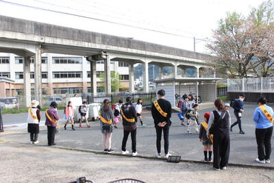毎月15日前後に児童の登校の様子を見守る登校指導を行います。職員とPTA、そして地域の婦人会の皆様が児童の登校を見たり、あいさつをしたりしていただいています。こうした取り組みが児童の安全を守ることにつながっています。ありがとうございました。今後もよろしくお願いいたします。