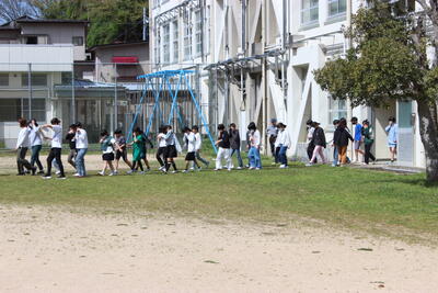 今年度初めての避難訓練を行いました。今回の大きな目当ては「避難経路を覚える」ことです。教頭先生の放送による指示で避難を開始しました。避難中は、緊張感をもってグラウンドに出てくることができました。全員の避難が確認できるまでの待ち時間で、少しおしゃべりをして注意を受けましたが、全体的には緊張感のあるよい訓練になりました。これからあと何回か訓練を実施します。1回1回真剣に取り組んで、もし災害が発生した時には、冷静に自分の命を守る行動をとれる子になってほしいと思います。