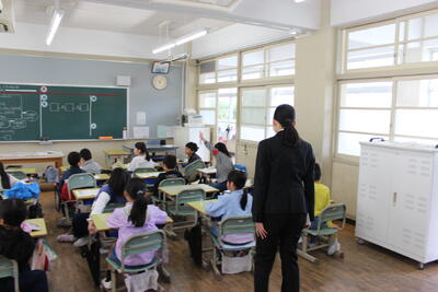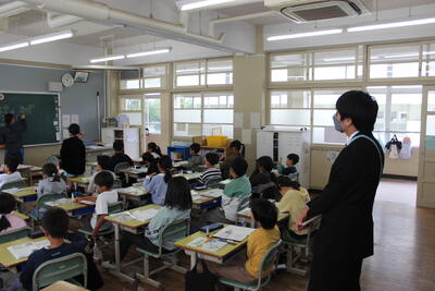 舞鶴支援学校から初任者の先生方が、「他校種研修」として来校されました。教室に入り、授業サポートや授業参観を行い、支援学校との違いや共通点を学び、今後の教育実践に活かされていきます。