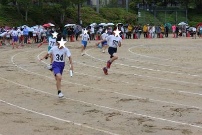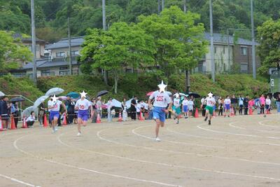あいにくの天気となりましたが、舞鶴市小学生陸上競技大会に出場した名の児童は、天候に負けることなく、練習成果を遺憾なく発揮し、それぞれの出場種目で精一杯頑張りました。テントでは、出場者に対して大きな声で応援し、まさに「チーム新舞鶴」で一丸となって取り組むことができました。