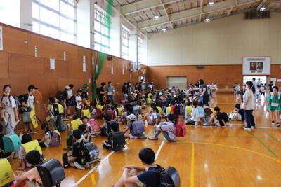 学校に来ている間に、警報が発表され、緊急に下校する場合に備えて訓練を行いました。昨年度までとは違い、体育館に全校が集まり、分団移動を行ったり、学校待機の場所に行ったりして緊急の下校に備えました。これから出水期に入ります。安全に元気に過ごしましょう。