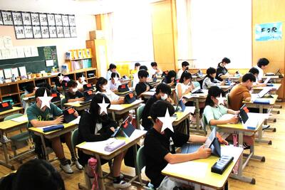 5月20日(火)から4・5・6年生がテストに挑んでいます。明日は5年生が取り組みます。すべてタブレットで回答するCBT(Computer Based Testing)形式で行います。さぁ、実力が存分に発揮できたかな?