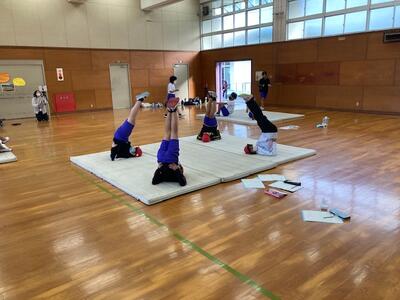 体育の学習です。マット運動でいろいろな場を設定し、できる技やもう少し頑張ればできる技に挑戦しています。
