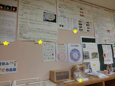 夏休みに子どもたちが作ったり、調べてまとめたりした作品を並べ、作品展を行いました。