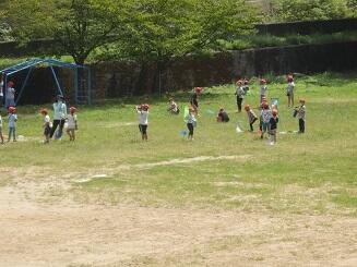 グラウンドの奥の方、草がたくさん生えている辺りに