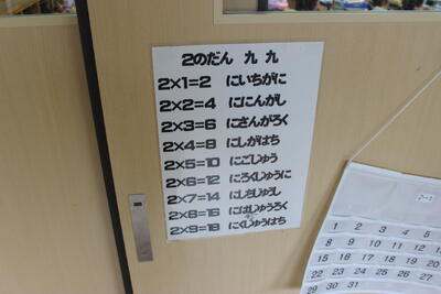 九九にチャレンジ(2年生)10/16 投稿: 学校管理者 (15:05) カテゴリー: 今日の出来事 2年生の算数の最大の山場「九九」の学習が始まっています。2年生のうちに完璧に覚えてしまうことが何より重要です。早速2年生の入り口の扉には習った九九の表が貼ってあり、1度唱えてから教室に入ります。 Tweet -