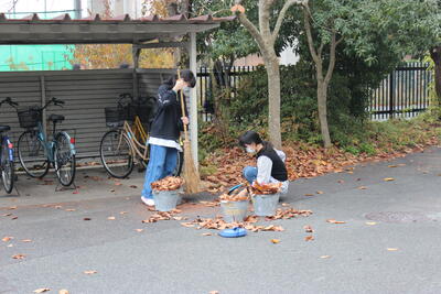 朝の風景 11/25 投稿: 学校管理者 (13:07) カテゴリー: 今日の出来事 季節は、どんどん冬に近づいています。校内の木々からは枯葉が舞い落ち、校内は落ち葉でいっぱいです。環境委員会の取組で、毎朝当番の児童が竹ぼうきで落ち葉を集めて、掃除をしてくれています。はいてもはいてもまたすぐ落ち葉でいっぱいになりますが、根気強く掃除を続けてくれています。委員会の皆さん、お疲れ様です。そしてありがとうございます。 Tweet -