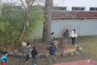生活科の学習です。冬みつけをしています。冬になるとどんな変化があるのかな。