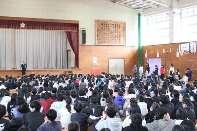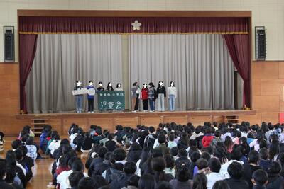 児童会本部役員引継式 3/10 投稿: 学校管理者 (09:30) カテゴリー: 今日の出来事 令和7年度後期本部役員と令和8年度前期本部役員との引継式が行われました。後期本部一人一人が活動を振り返り、次へバトンをつなぎました。バトンを受け取った前期本部は会長が代表して決意を述べました。よき伝統が引き継がれ、来年どもよりよい学校を目指して、本部役員をリーダーに全校が一つになって進んでいきます。 Tweet -
