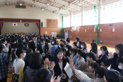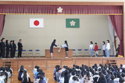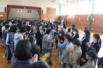 離任式 3/30 投稿: 学校管理者 (16:43) カテゴリー: 今日の出来事 本日離任式を行いました。11名の転退職される先生方とのお別れでした。長い先生で15年、短い先生で7ヶ月。それぞれ長い短いはありますが、お一人お一人から新舞鶴っ子の良い所や思い出をお話しいただき、お別れをしました。本日出席した児童全員が感謝の気持ちで大きな拍手を送っていました。 Tweet -