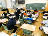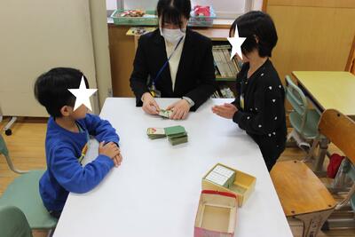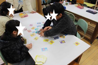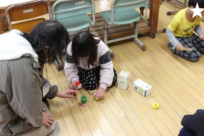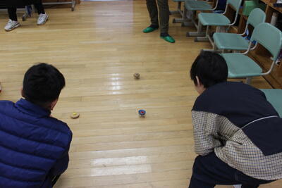 昔の遊びを体験しました。「こま回し」「かるた」「百人一首(坊主めくり)」「だるま落とし」などなど、普段あまり遊ばない昔の遊びに興じました。参観日でしたので、保護者の方も一緒に楽しみました。こま回しでは、親子対決の場面もありました。