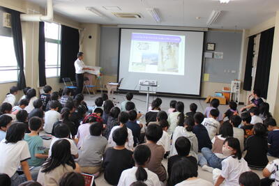 5時間目に砂防や土砂災害について学ぶ出前講座を開催しました。砂防の大切さや土砂災害から命を守る学習です。土砂災害の衝撃映像などを見て、子どもたちも実感として今日の学習を学ぶ意義を感じていました。ハザードマップなどを確認し、自然災害から自分の命を守ることができるようになってほしいです。