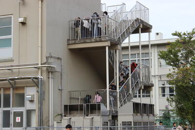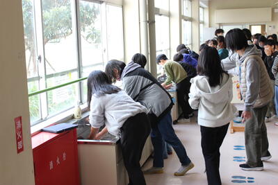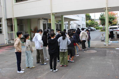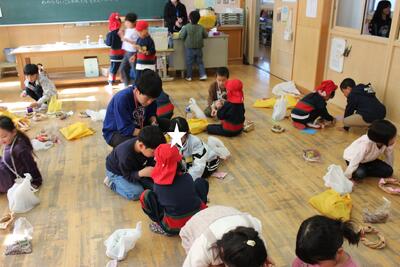 本日、地震と原子力災害の避難訓練を実施しました。今日のメインは「原子力事故からの避難」ということで、地震からの避難で運動場に集まった後、原子力発電所で事故が発生し、放射能物質が流れて来たという想定で、「屋内避難」の訓練を行いました。体に付着したであろう放射能物質を払って校内に入り、手洗い・うがいをして教室に入りました。全校児童集中して取り組むことができました。