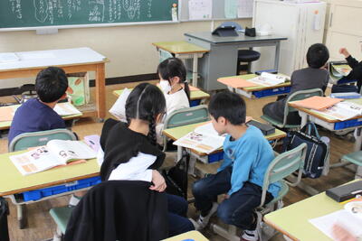 学習の中で、より多く児童の意見を聞きたいというときに、まずはお隣さんと話をして発表の準備をしてから、全体交流を始めるという手法をよく使います。道徳の時間ですが、今日の学習のポイントになる部分の時にペアトークを取り入れていました。
