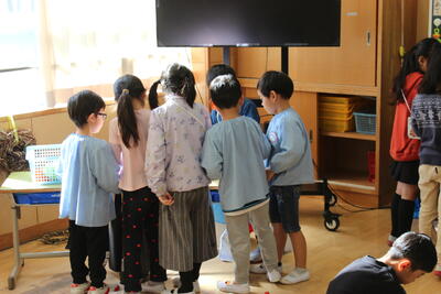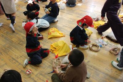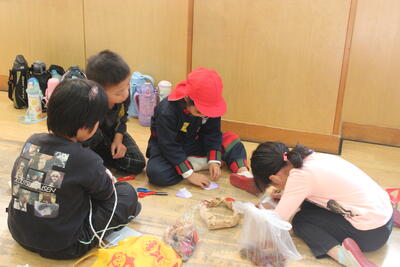 1年生と連携園の年長さんとの交流活動を行いました。先日、前島公園に一緒に秋見つけに出かけ、たくさんの落ち葉やどんぐりを拾ってきていました。それを包装紙などでかたどった土台にくっつけていき、素敵なリースづくりに取り組みました。すっかり立派なお兄さん・お姉さんに成長した1年生が、年長さんをしっかりリードし、楽しい活動になりました。
