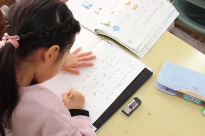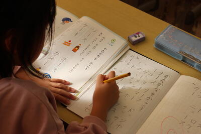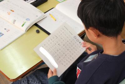 国語の学習です。平仮名から始まり、漢字を学び、そして今はカタカナの学習が始まりました。1年生の内にひらがなとカタカナはしっかりと身に付けておく必要があります。言葉と文字を結びつけながら、しっかり覚えていきます。