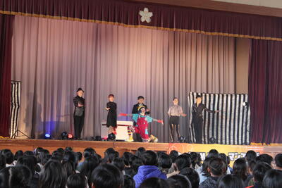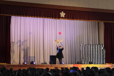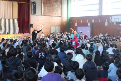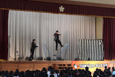 文化庁の巡回公演として、本日「ミラクルイリュージョンサーカス」を鑑賞しました。名古屋を拠点として活動されているパフォーマンス集団「パフォーマンスラボ」の皆さんにきていただきました。イリュージョンマジックやジャグリングなど想像以上のパフォーマンスに全校が拍手や歓声を挙げて、心から楽しむことができました。まさに圧巻の演技で、あっという間に時間が過ぎました。見終えた子どもたち全員が笑顔でした。パフォーマンスラボの皆様、素晴らしい公演をありがとうございました。