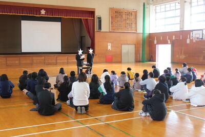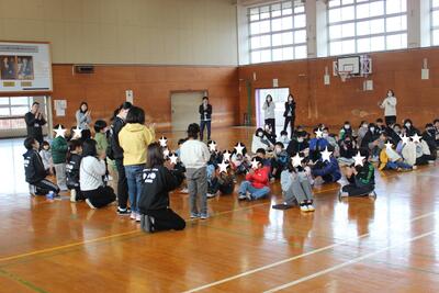 白糸中学校区の1中学2小学校の特別支援学級に所属する児童生徒と舞鶴支援学校の校区に住む児童が一堂に会し、交流会を開催しました。自己紹介の後、各小中学校が順番にゲームを担当し、楽しく触れ合いました。レクリエーションを通して、親睦が深まりました。