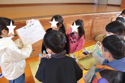 2年生が1年生を招待し、「はせやま秋まつり」を開催しました。2年生がこの日のために1年生が楽しめるゲームをそれぞれのグループで考え、制作し、この日に臨みました。1年生も招待状を受け取った日からこの日を指折り数え楽しみにしていました。2年生は自分たちの場所に来てもらえるように呼び込みをしたり、来てくれた1年生にやさしくやり方を教えたりしました。1年生もどの場所でも楽しい遊びに夢中になっていました。1・2年生のなんともほほえましい姿があふれた日になりました。