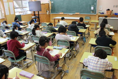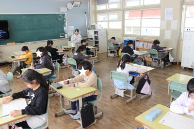 はせやまん大会「漢字の部」を開催しました。この時間は毎回ですが、全校一斉に取り組むので、校内はまるで誰もいないかのように静まり返ります。どの教室も真剣に問題に取り組んでいます。
