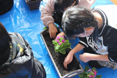 子育て支援協議会の皆様にお世話になり、花いっぱい運動を行いました。今日は1~3年生を対象にプランターにチューリップの球根を植えました。植え方の説明を受けて、やさしく丁寧に球根を植えていきました。春になって、チューリップの花がいっぱい咲くことが今からとっても楽しみです。
