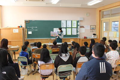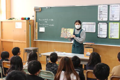 ひまわり学級がブックトークを行いました。市の図書館から司書の方に来ていただき、「めしあがれ」というテーマで、たくさんの本を紹介していただきました。子どもたちも前のめりで話を聞き、読書への意欲を高めていました。
