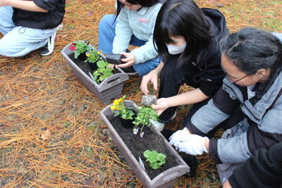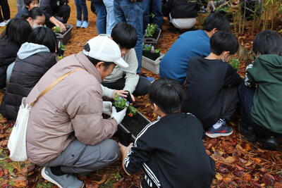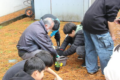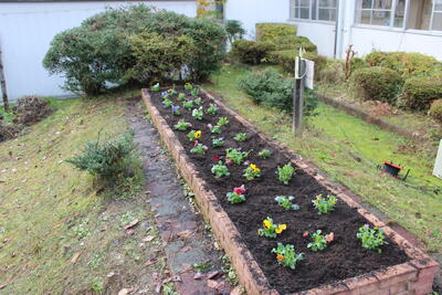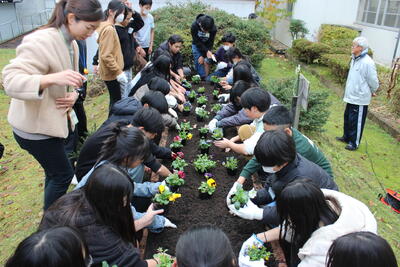 第3回目となる花いっぱい運動が6年生を対象に開催されました。6年生は中庭の花壇とプランターに花を植えました。色味がなく寂しい中庭が、かわいらしい花でいっぱいになりました。