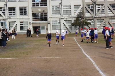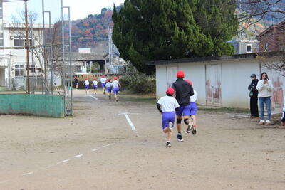 3度目の正直で本日ようやく校内持久走記録会を開催しました。グラウンドは少しぬかるんでいるところがありましたが、職員が朝早くから整備を行いました。全校、自分のベスト記録を目指した頑張りました。