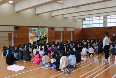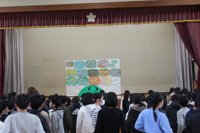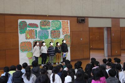人権旬間が昨日で終了しました。今日は、その間の各学級の取組や変化を発表し合いました。低学年(1~3年)と高学年(4~6年)に分かれて行いました。どの学級も人権についてしっかり考えられた期間になったことがよく分かりました。はせやまん・はせみんの頭の上のいいところの実もいっぱいになりました。これからも一人一人の人権が守られる温かい新舞鶴小学校であり続けてほしいです。