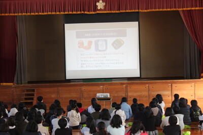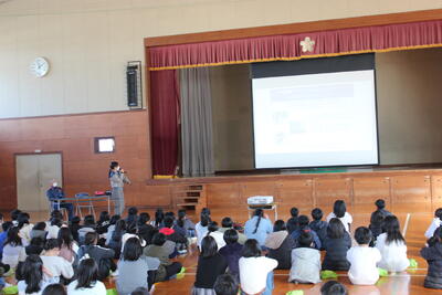 今年最後の全校集会を行いました。人権のうた「ありがとうの花」を全員合唱し始まりました。児童会から今月の月目標の提案があり、その後図書委員会からおすすめの本紹介がありました。感想交流では、たくさん手が挙がり、自分の考えを大勢の前でも発表しようとする意欲の高まりを感じました。