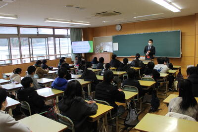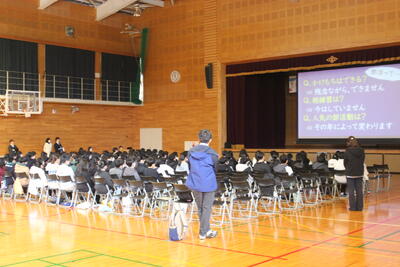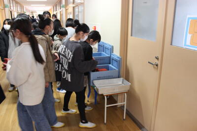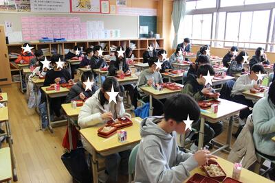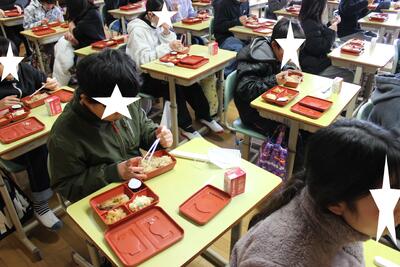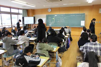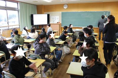 6年生が白糸中学校に体験入学に行きました。生徒会の皆さんから学校生活についての説明を受け、その後各教室に入りました。そしてワクワクドキドキの給食時間です。中学校の給食ってどんなのかとても気になるところです。実際に食べてみると、みんなのおいしい笑顔が広がりました。給食が終わったら、体験授業です。1組「社会」、2組「理科」、3組「英語」、4組「国語」の授業でした。はじめは緊張している様子でしたが、中学校の先生の優しくて面白い雰囲気にだんだんと緊張もほぐれ、楽しんで授業に参加する様子が見られました。