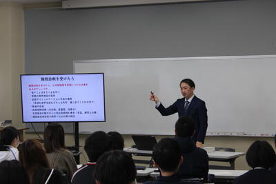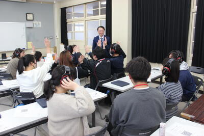 舞鶴聾学校の先生にお越しいただき、「きこえ」に係る職員研修を行いました。音や声が聞こえる耳の仕組みや難聴の方を補助する道具の仕組み、聞こえにくさの体験などを分かりやすくお話しいただきました。「イヤーマフ」をつけてしりとりをして、聞こえにくいさのある方はどんな苦労があるのかを体験しました。体験することで、実感として聞こえにくさを捉えることができ、支援の方法のヒントも得る研修となりました。
