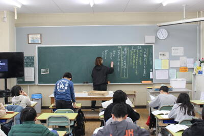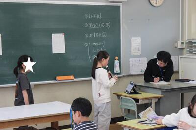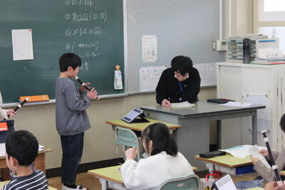 国語の授業です。詩を読んで感じたことを交流します。その交流したことを活かし、今度は自分で詩を作ります。
