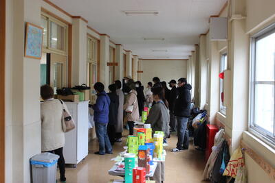 参観日に合わせて、「ひまわりストアー」が開店しました。食堂では、おでんが販売されました。大根がメインで、よく味がしみてとってもおいしかったです。隣の部屋では売店が開かれ、自分たちで制作したいろいろなものが並べられていました。実際のお金をやり取りする販売で、お釣りを間違えないようにもらった金額をよく確認して、上手に店員さんができました。