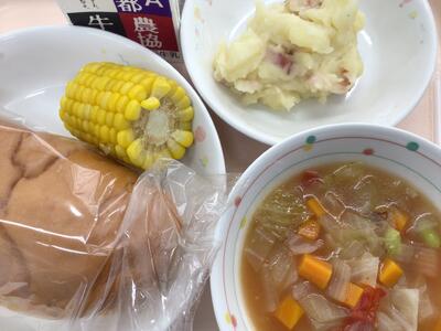 9/3(水)味付けパン じゃがいものチーズ煮 ミネストローネ ゆでとうもろこし