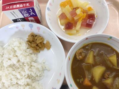 9/4(木)麦ごはん 福神漬け ポークカレー フルーツパンチ