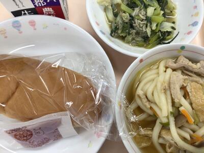 9/12(金)小型パン いちごジャム こぎつねうどん 小松菜とじゃこの炒め煮