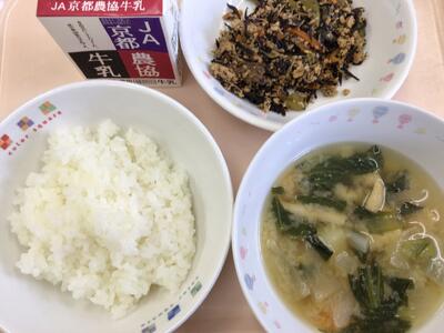 9/22(月)ごはん ひじきと万願寺あまとうのピリ辛丼 小松菜のみそ汁