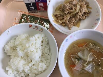 9/29(月)ごはん 味つけ海苔 豚肉の生姜炒め 厚揚げのみそ汁