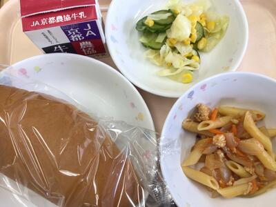 10/1(水)黒糖パン きのこと万願寺のミートペンネ コーンサラダ