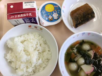 10/6(月)ごはん さばのみそ煮 お月見汁 お月見ゼリー