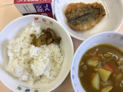 10/9(木)麦ごはん きゅうり漬け あじの天ぷら カレー汁