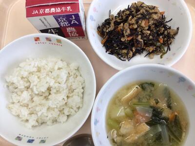 10/16(木)麦ごはん ひじきと万願寺甘とうのピリ辛丼 実だくさんのみそ汁